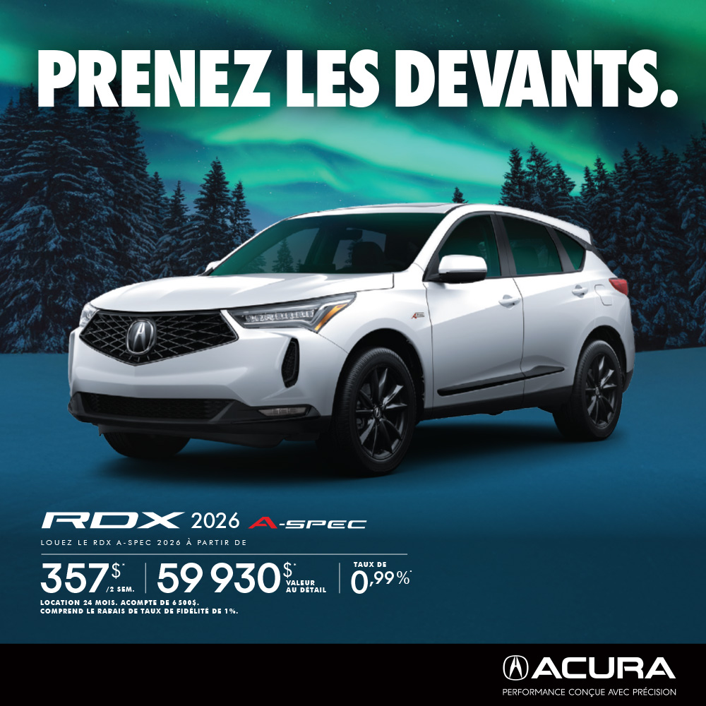 Le RDX 2026, pour sa part, se positionne un cran plus haut dans la gamme. Ce VUS compact de luxe offre une présence plus imposante sur la route et une expérience de conduite encore plus sportive. Grâce à sa traction intégrale Super Handling All-Wheel Drive (SH-AWD), il propose une tenue de route exceptionnelle, particulièrement utile lors des hivers québécois.