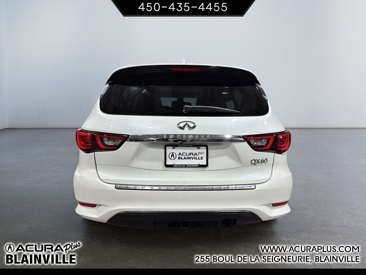 Ce INFINITI QX60 2018 est disponible chez Acura Plus à Blainville. Contactez notre équipe des ventes ou venez nous visiter au 255 Bd de la Seigneurie O pour obtenir plus d'informations, en faire l'essai ou le réserver.